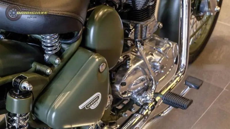 Xi nhan của xe được thiết kế rời, hạ thấp xuống phía dưới, tạo nên một nét đặc trưng riêng biệt cho Royal Enfield Classic 500. Điều này không chỉ mang lại tính thẩm mỹ mà còn làm cho chiếc xe trở nên độc đáo hơn so với các đối thủ cạnh tranh.