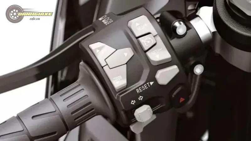 Cùm trái của xe là cụm công tắc tích hợp nhiều nút điều khiển quan trọng, bao gồm các nút điều chỉnh hệ thống kiểm soát lực kéo, giúp người lái dễ dàng điều chỉnh mức độ bám đường phù hợp với điều kiện vận hành.